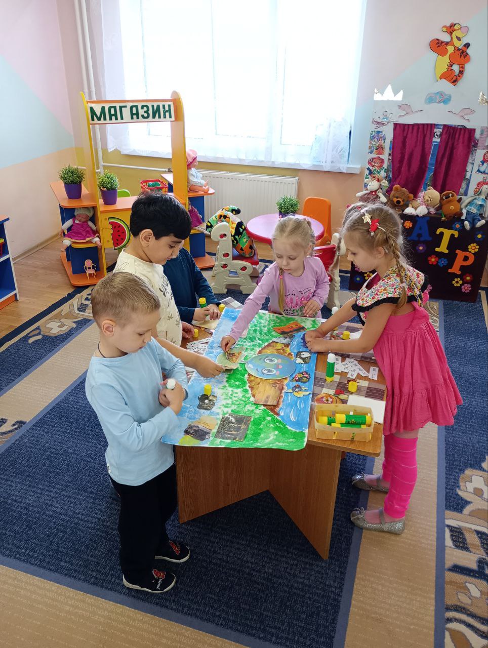 В середній групі "Волошка" відбулося підсумкове інтегроване заняття з розділів програми: "Ознайомлення з природнім довкіллям", "Дитина в соціумі" "Розвиток мовлення", "Читання за методикою Л. Шелестової" та логіко-математичний розвиток з використанням LEGO на тему "Подорож по Землі".
