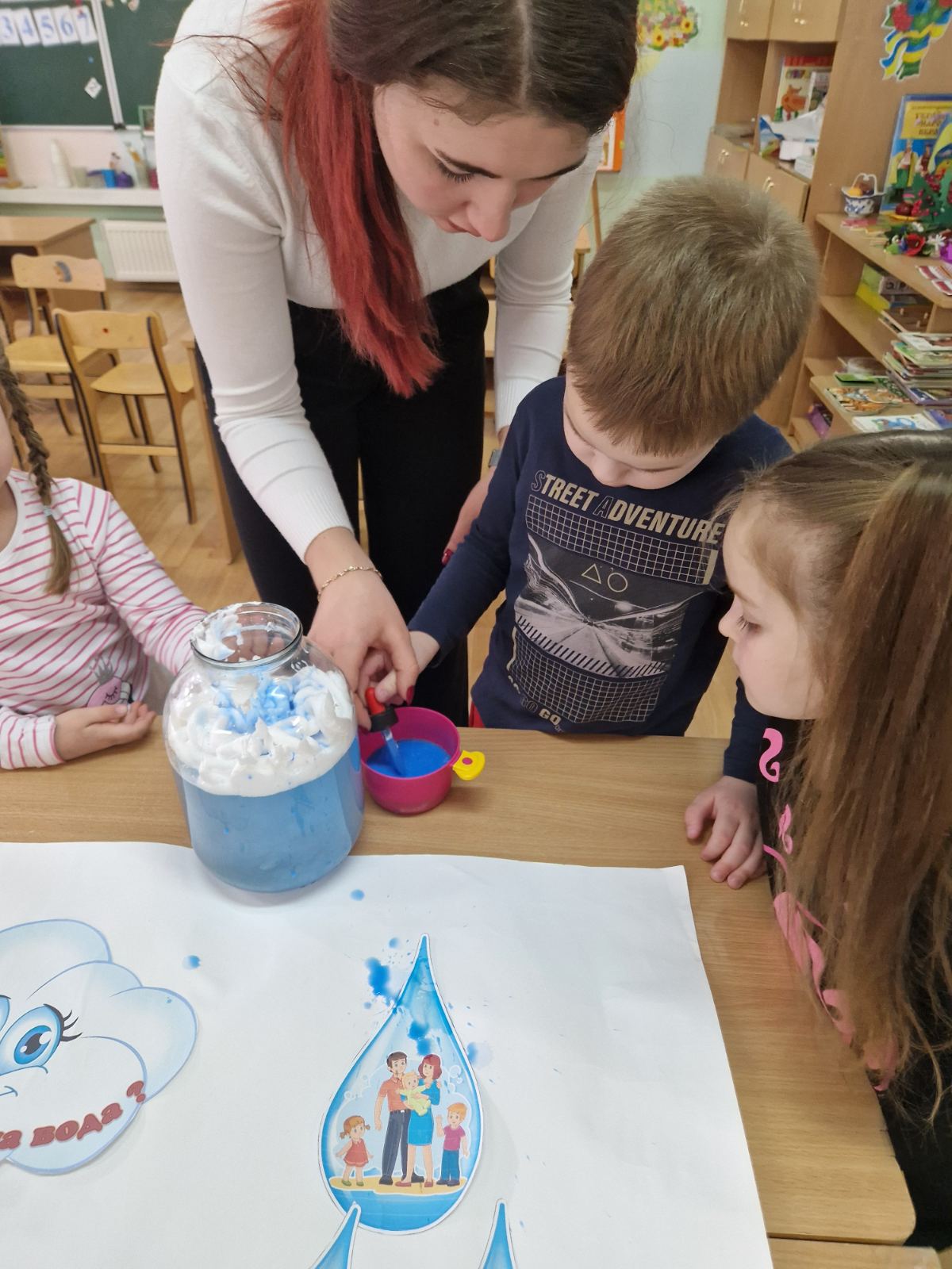 В середній групі "Бджілка" діти проводили дослід з водою та дізнавались кому потрібна вода.
