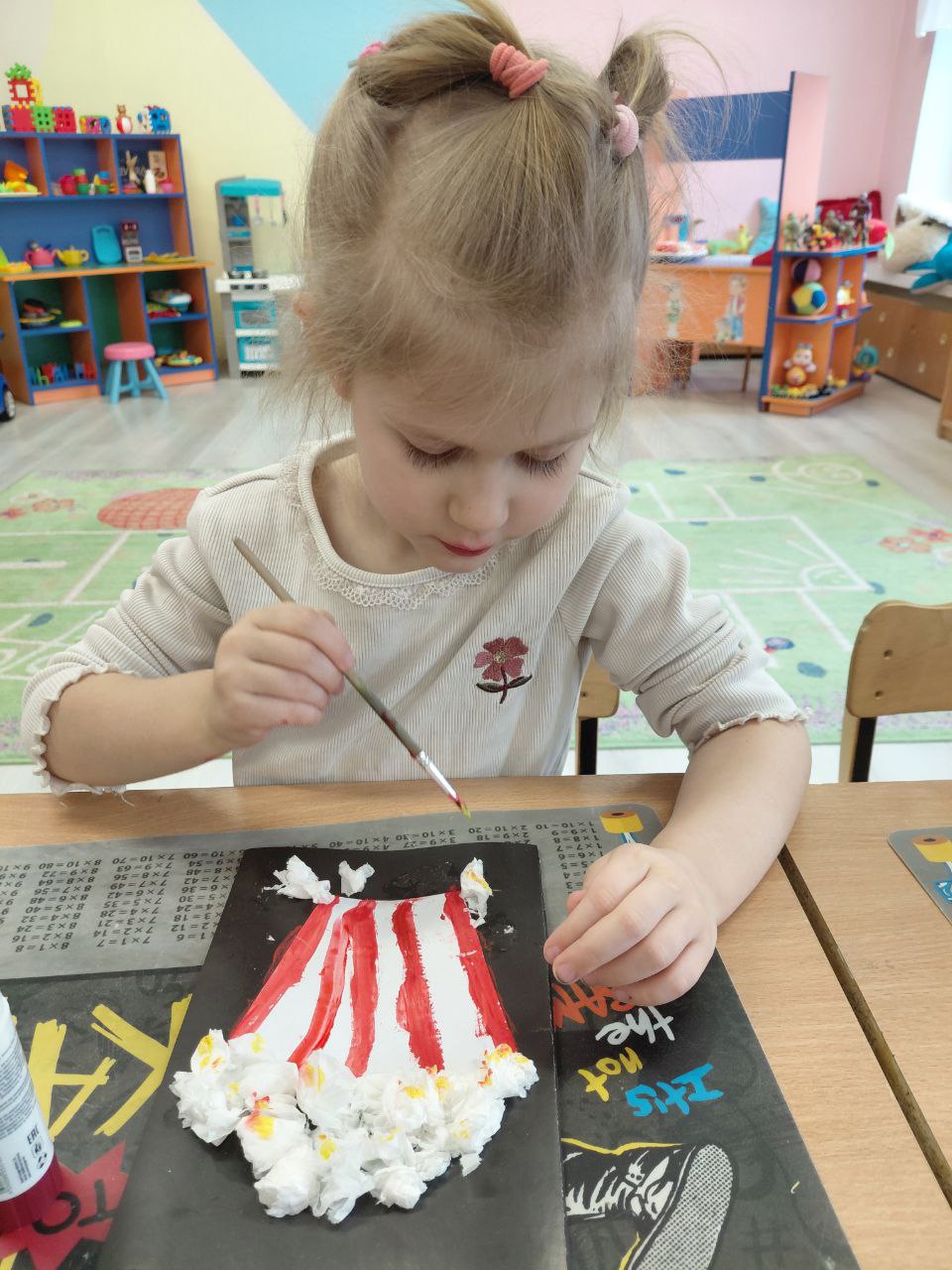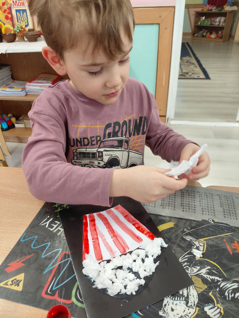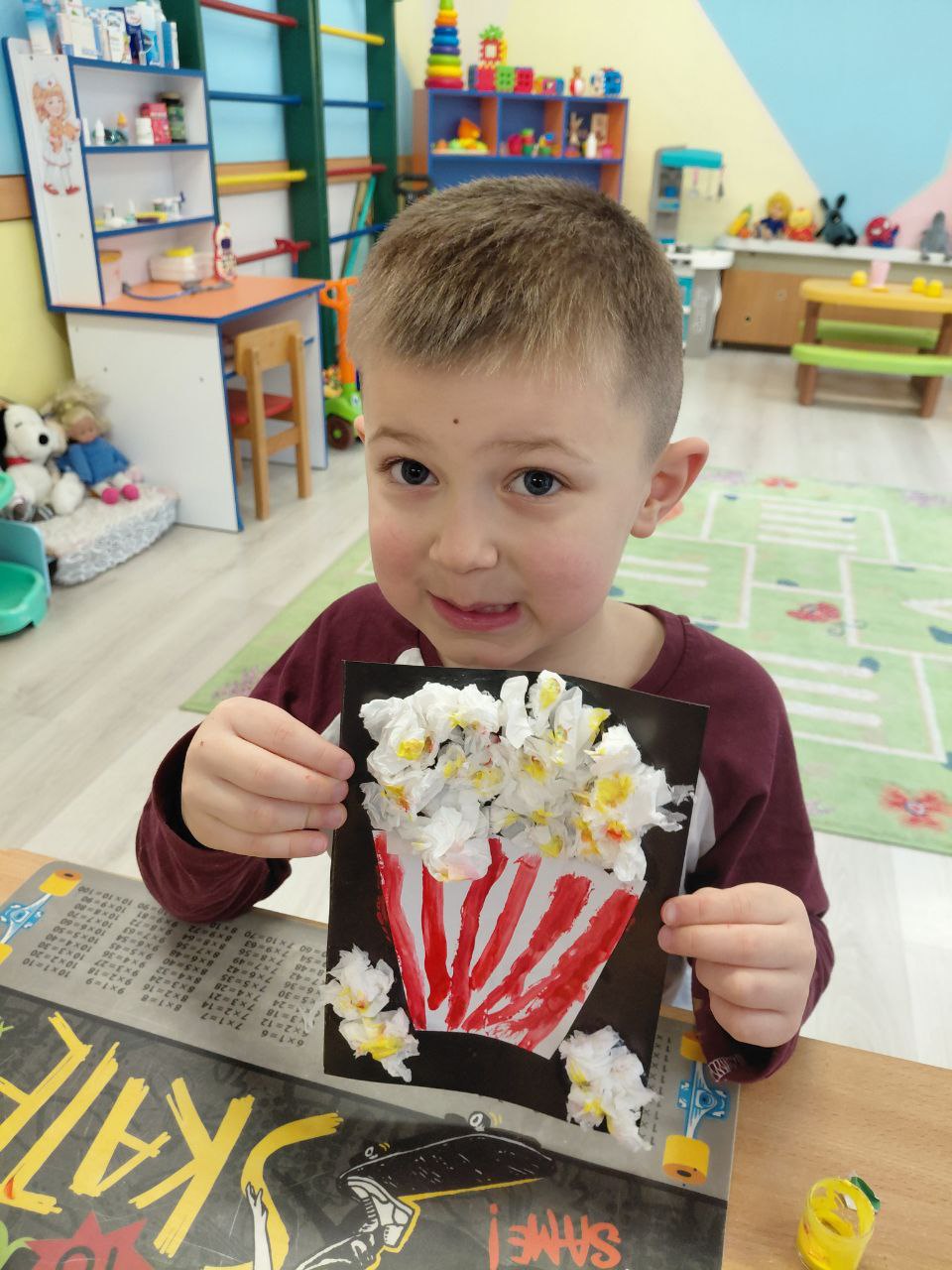 А після перегляду на дітей чекала творча частина дня — аплікація “Попкорн”