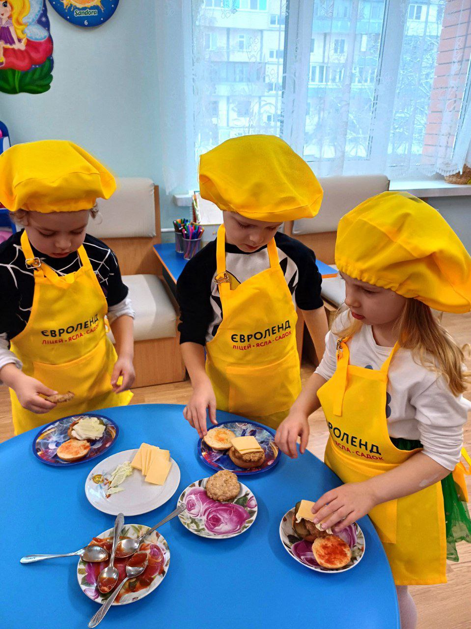 Сьогодні у яслах-садку «Євроленд» діти середніх груп перетворилися на справжніх маленьких кухарів і готували смачнющі гамбургери.