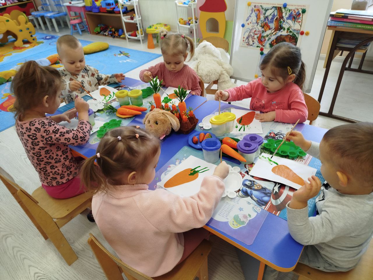 У ясельній групі «Капітошка» ясел-садка Євроленд відбулося яскраве заняття з образотворчої діяльності на тему «Смачна морква для зайченят».