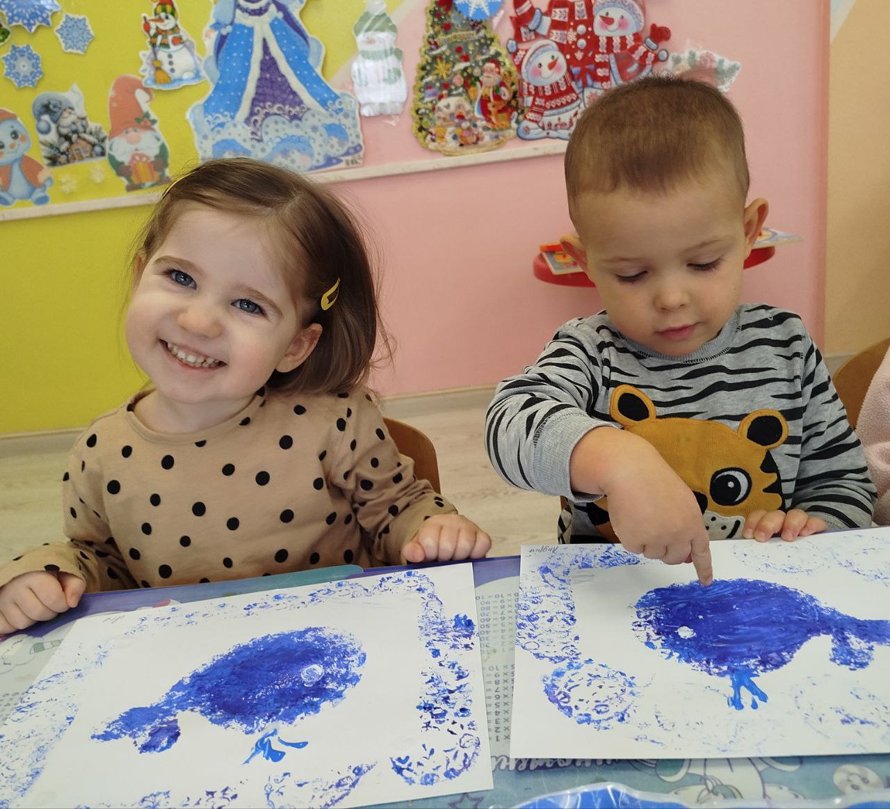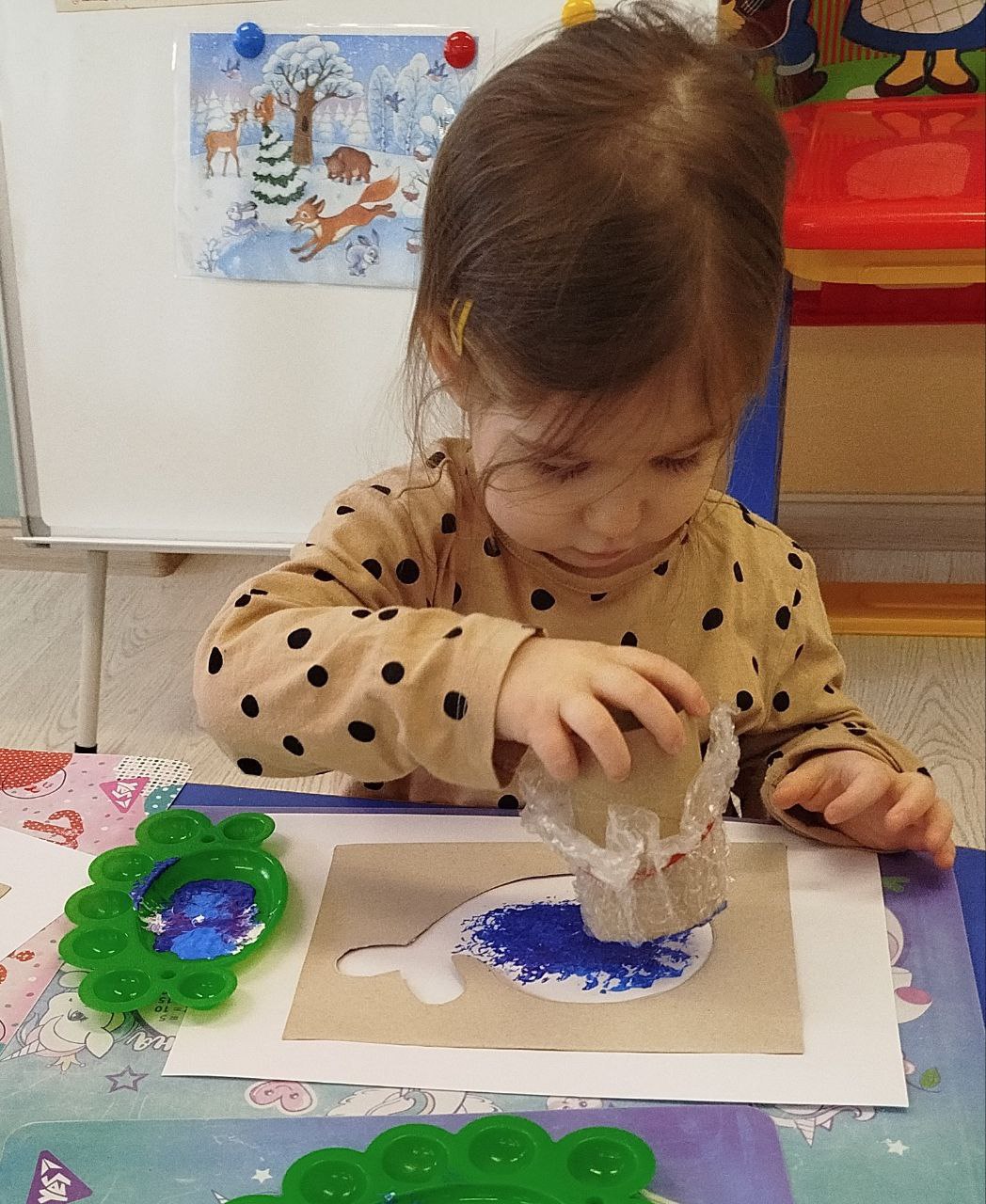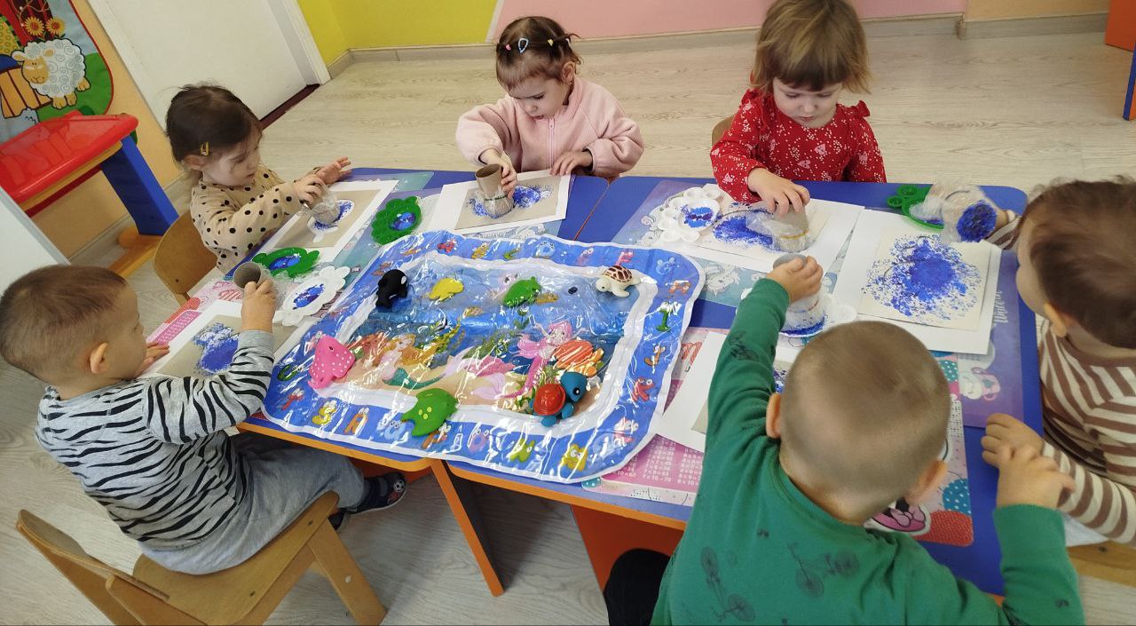 До Всесвітнього дня китів у ясельній групі «Капітошка» відбулося творче заняття з образотворчої діяльності. Малята знайомилися з дивовижним світом морських гігантів і створювали власні роботи, використовуючи нетрадиційний метод малювання — штампування.
