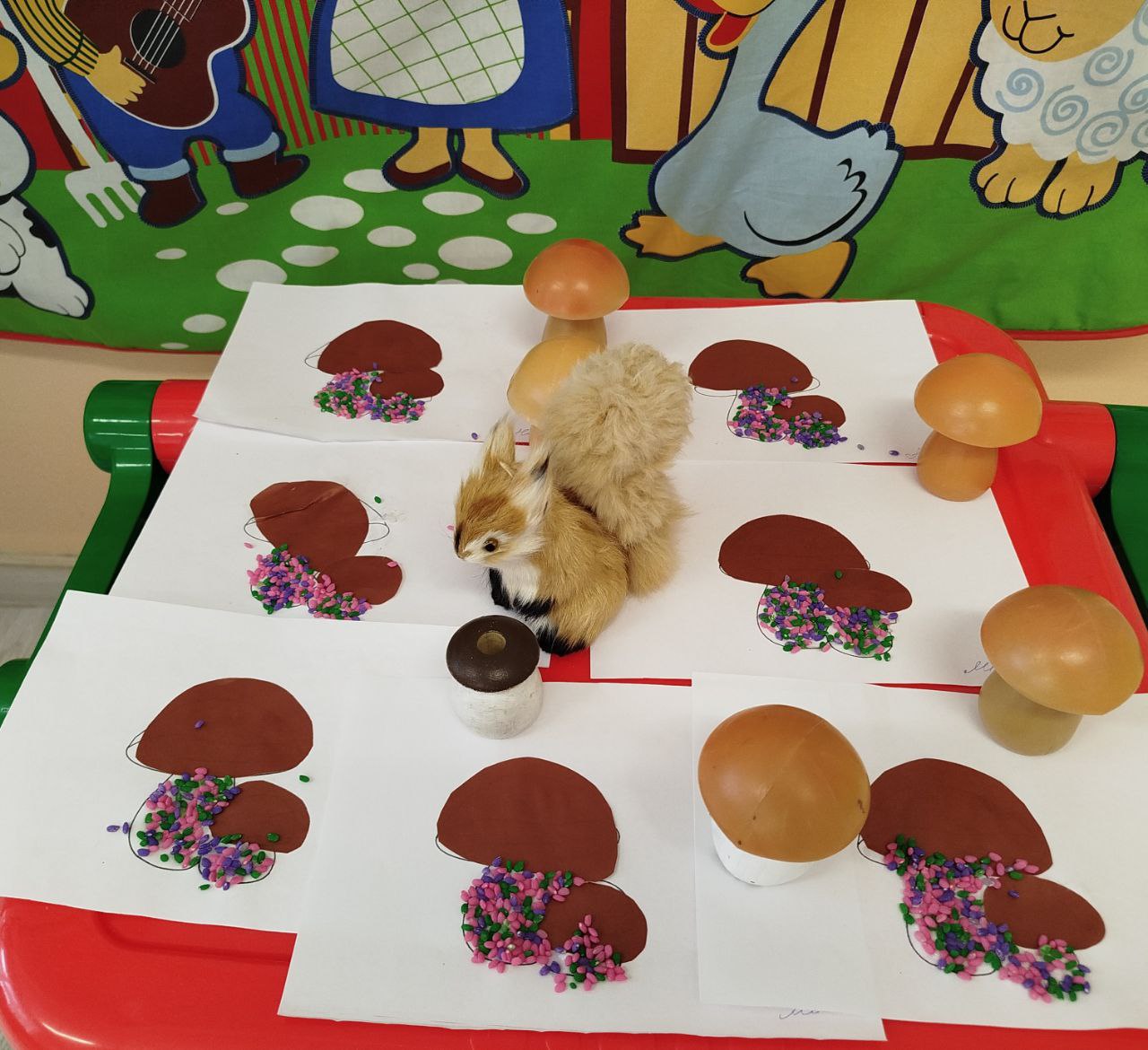 Малюки із захопленням створювали яскраві грибочки для маленької білочки, навчаючись працювати з папером, клеєм та різними формами. Під час заняття діти розвивали дрібну моторику, координацію рухів, увагу та творче мислення.