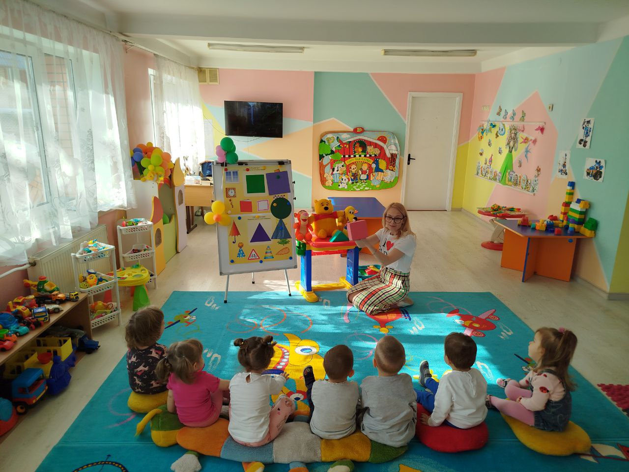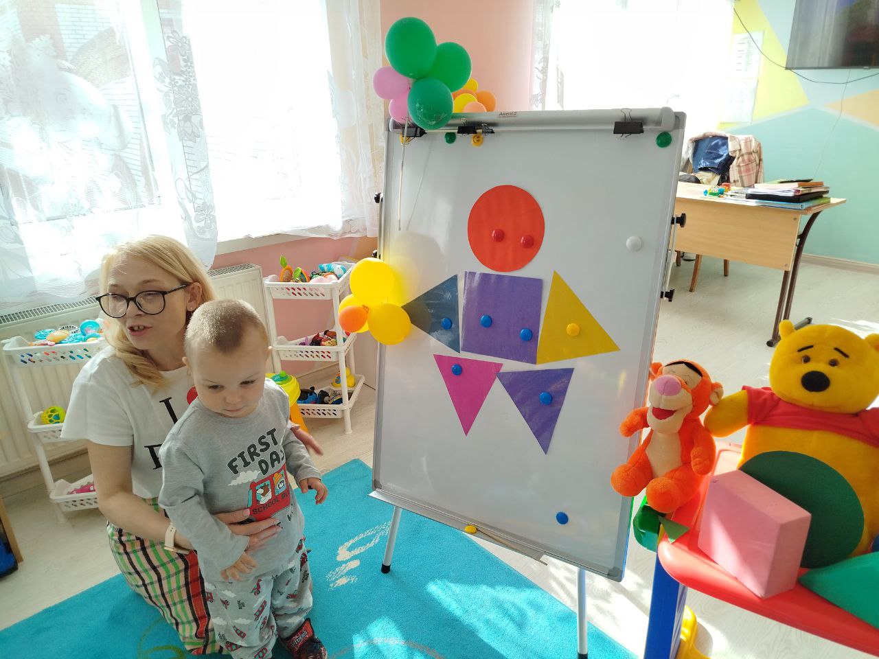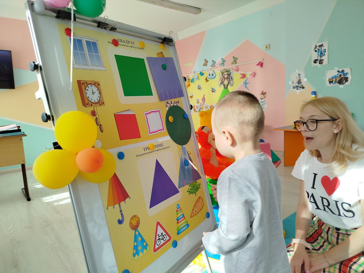 Діти знайомилися з геометричними фігурами — кругом, квадратом і трикутником, вчилися розпізнавати їх, порівнювати та знаходити у навколишньому світі. Особливий інтерес у малят викликало заняття «Геометричні чоловічки», де з простих форм народжувалися кумедні образи.