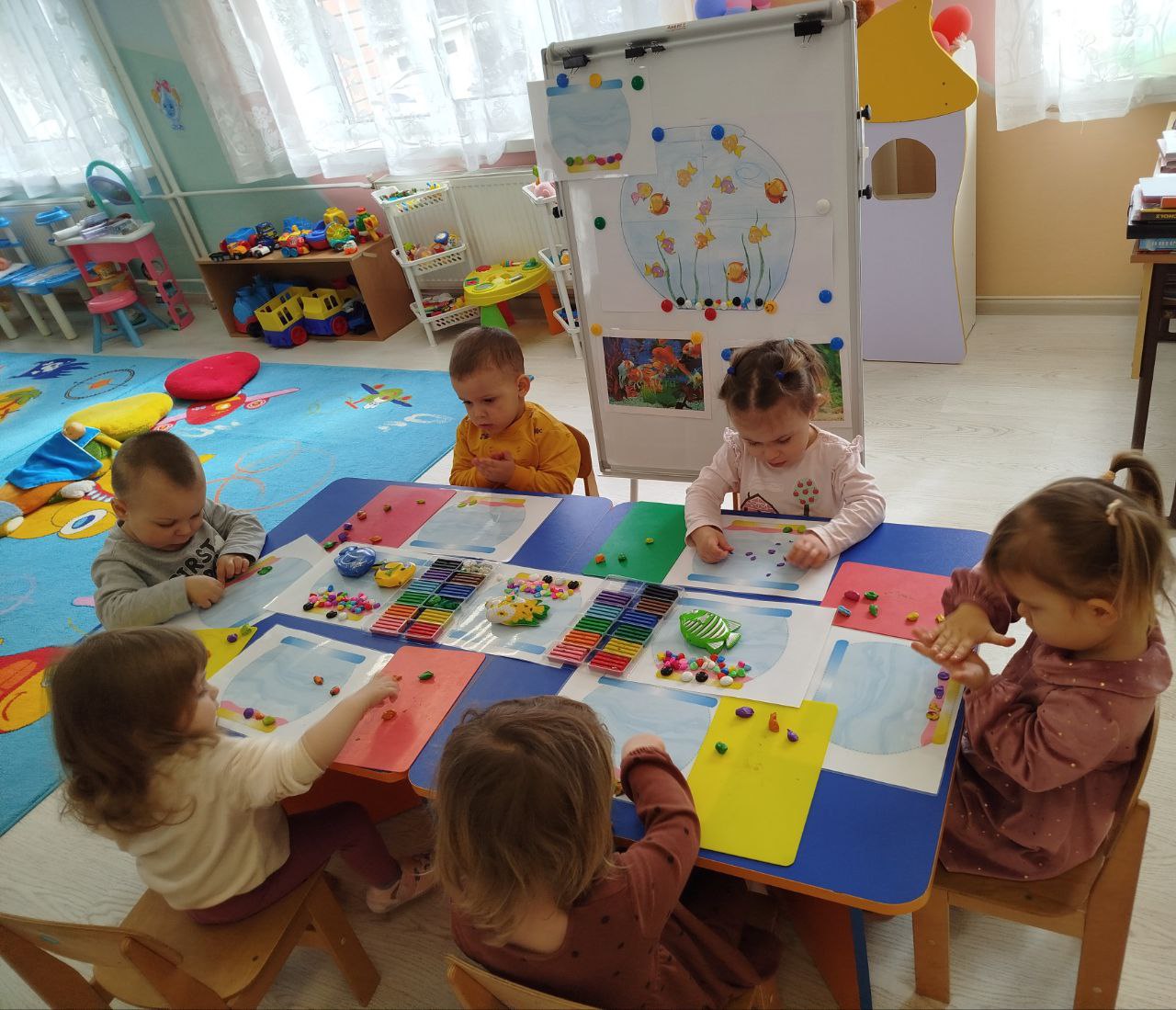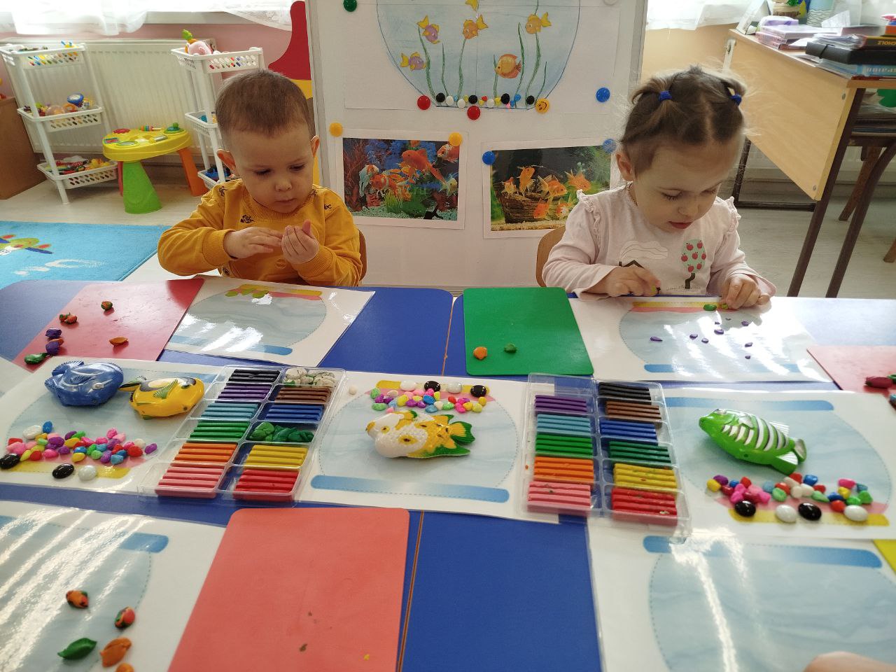 У ясельній групі «Капітошка» ясел-садка «Євроленд» відбулося тепле та захопливе заняття з художньо-продуктивної діяльності — малята створювали «камінці для акваріума» у техніці ліплення.