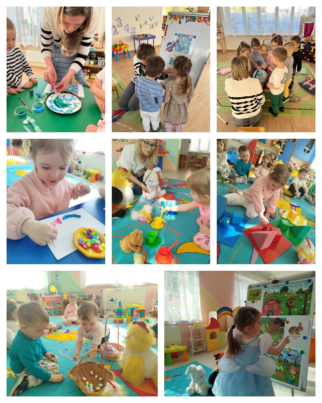 У межах розвитку мовлення дітки працювали над темою «Сорока та зайчик», а в сенсорно-пізнавальній діяльності вирушили «в гості до сороки». Малюки активно розвивали мовлення, уяву та пізнавальні навички.